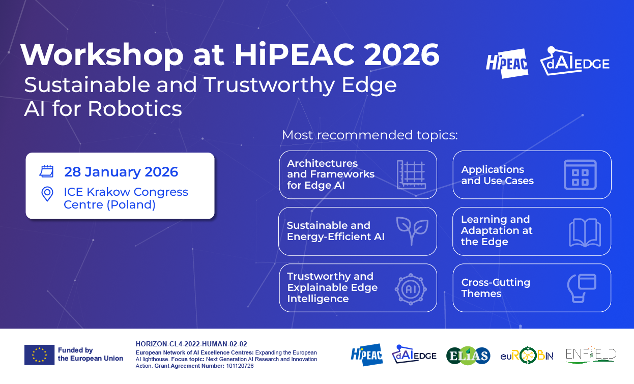 On Wednesday, 28 January, the Edge AI and robotics community will gather at our HiPEAC Sustainable and Trustworthy Edge AI for Robotics Workshop, a strategic meeting that will address the main challenges and opportunities of the responsible deployment of intelligent systems in real environments.