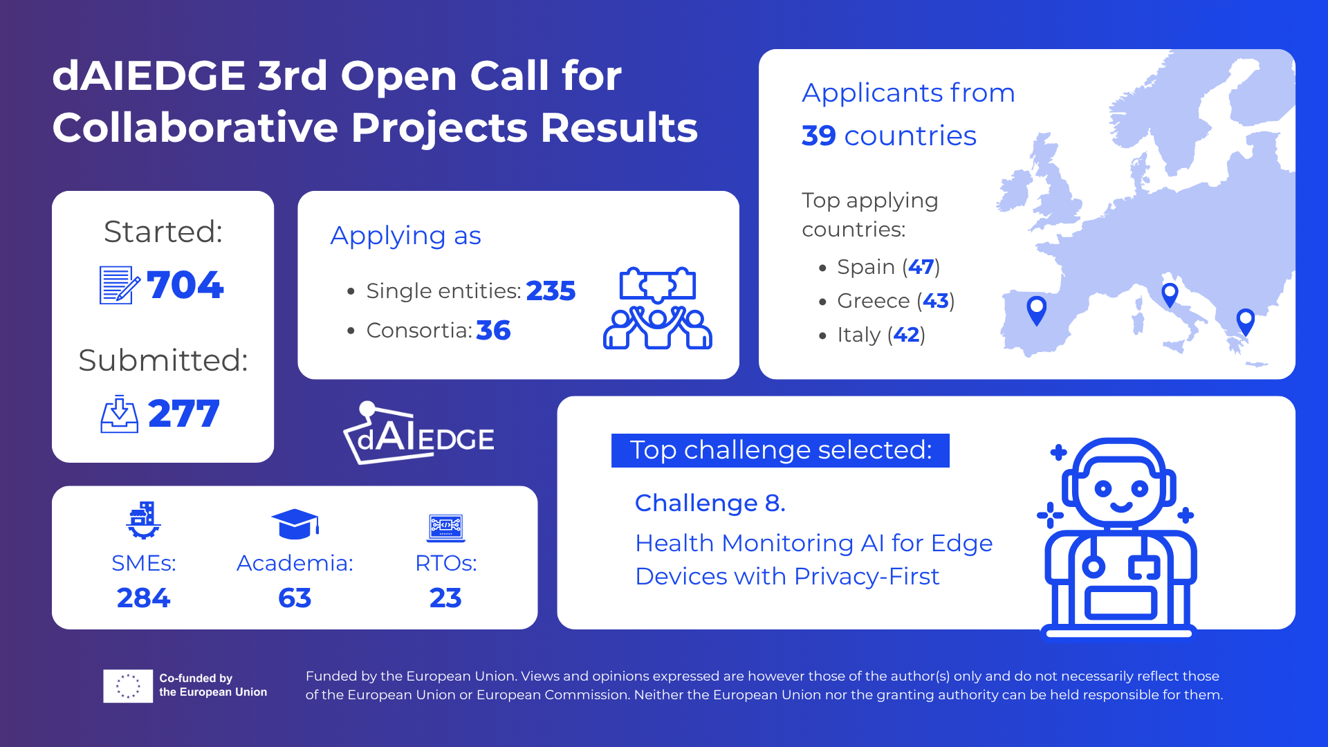 The third and final dAIEDGE Open Call for Collaborative Projects officially closed on 17 October at 17:00 (Brussels time), marking another important milestone for the European Edge AI community. The level of participation once again exceeded our expectations, demonstrating the growing maturity and engagement of innovators across Europe in the field of Edge AI.